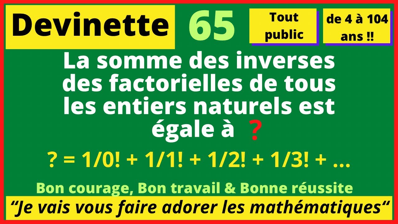 65 La somme des inverses des factorielles de tous les entiers naturels est égale à
