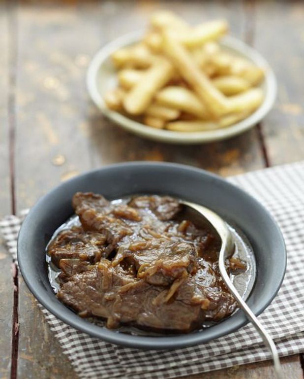 10 min. Emincer les oignons et ajouter-les pour les faire blondir. 4. Terminé. 5 min. Ajouter la bière (ce n'est pas grave si la viande n'est pas totalement recouverte, il faudra juste la retourner régulièrement). Ajouter l'ail, le thym, le laurier, le sel et le poivre. Déposer les tranches de pain d'épices (elles fondront toutes seules) 5.