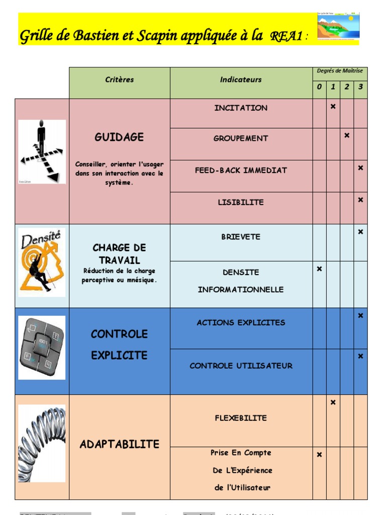 Liste des critères ergonomiques de Bastien & Scapin : nous vous proposons une liste abrégée à télécharger et à conserver comme outil de travail. Au final, Bastien & Scapin produisent donc une grille de critères ergonomiques qui permet de repérer en un minimum de temps les erreurs les plus grossières commises lors du design d'une.
