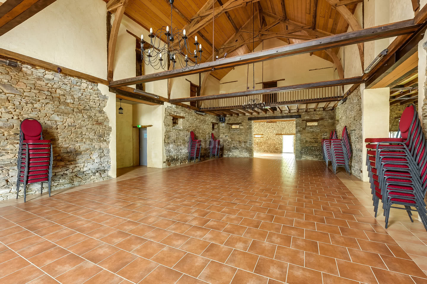 L'équipe du Domaine du Bois d'Andigné vous accueille au cœur de la campagne angevine. Situé entre Nantes et Angers, ce Domaine dispose d'une salle de réception d'une capacité de 180 couverts. Un vaste hall d'entrée loge un vestiaire caché derrière une stalle ancienne ainsi qu'un coin bar.