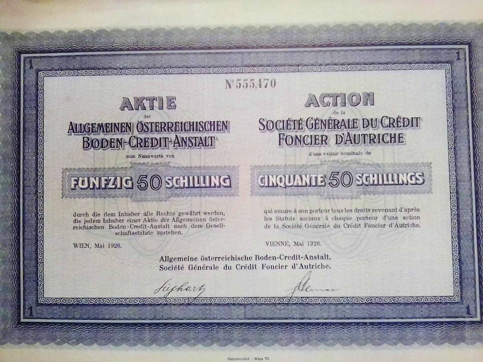 ACTIONS Société Générale du Credit Foncier d’Autriche 1926 sur Gens de Confiance
