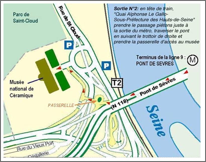 Métro Pont de Sèvres La station de métro Pont de Sèvres est située sur la Ligne 9 du métro de Paris.Elle est desservie en correspondance par le Tramway T2 et les bus 160, 169, 171, 179, 279, 291, 389 et 467. Le premier métro de la ligne 9 de passage du réseau RATP à la station de Pont de Sèvres passe à 5h25 du matin, le dernier métro de la ligne 9 passe à 0h27.