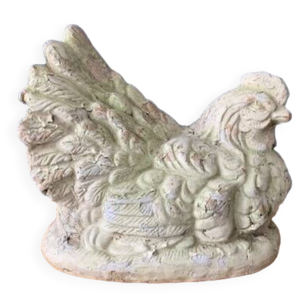 Poule décorative ancienne en terre cuite signée, 1950 Selency