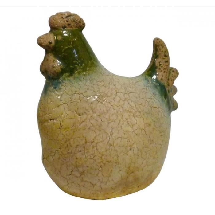 Poule de Jardin ou Statuette Décorative en Terre Cuite Emaillée Jaune 12,5x20x20,5cm Cdiscount
