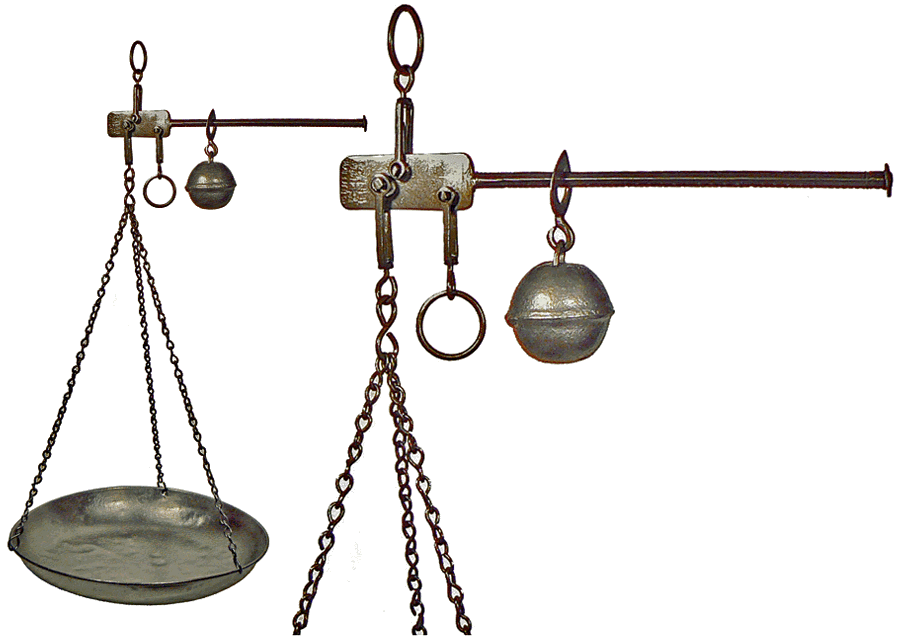 Pendant près de deux millénaires les balances romaines ont constitué l'unique instrument de pesage pour les très fortes charges (plusieurs milliers de livres). A l'opposé, pour les pesées moyennes, elles représentaient un instrument très prisé dans les commerces ambulants et dans le milieu rural (petits modèles à fléau en bois.