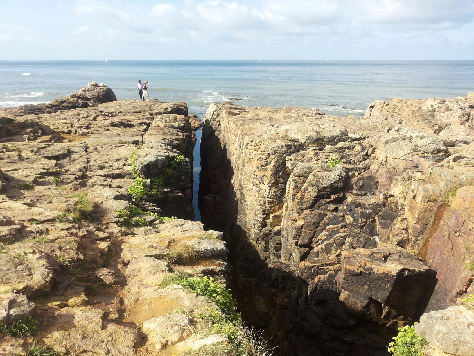 Le Puits d'Enfer. La côte vendéenne présente de longues plages de sable. Ces plages sont entrecoupées de corniches rocheuses. L'une au sud des Sables-d'Olonne et l'autre à St-Gilles-Croix-de-Vie. Au niveau de la corniche du Château-d'Olonne s'ouvre une faille dans la roche, le Puits d'Enfer. Cette faille perpendiculaire au front de mer a.