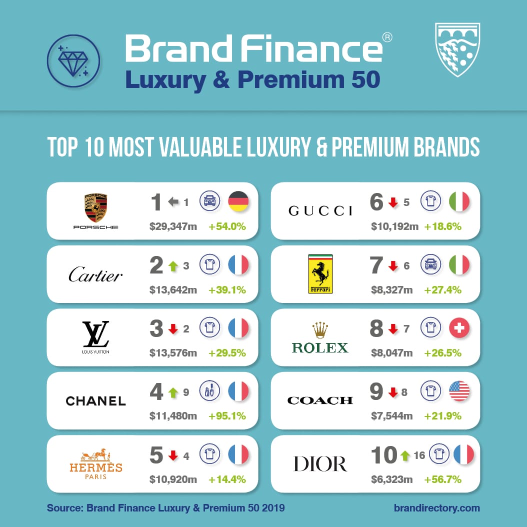 Le Top 10 des marques de Luxe et Premium (Cartier, Chanel, Hermes, Vuitton, Rolex, Gucci)